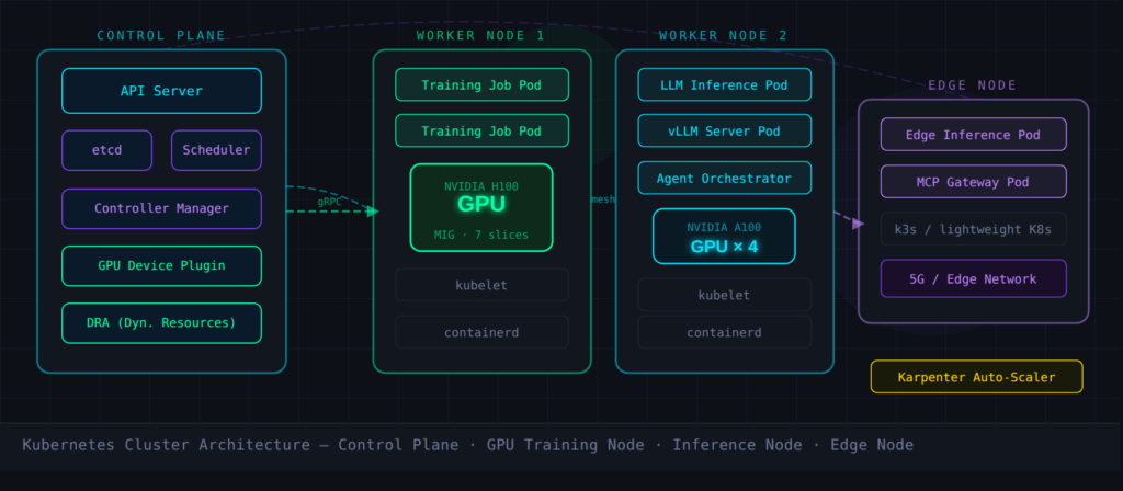 Here’s where it gets technically interesting. The heaviest AI workloads on Kubernetes in 2026 are MLOps platforms — systems that demand the coordination of bursty, resource-intensive training jobs with high-volume, continuously running inference services.